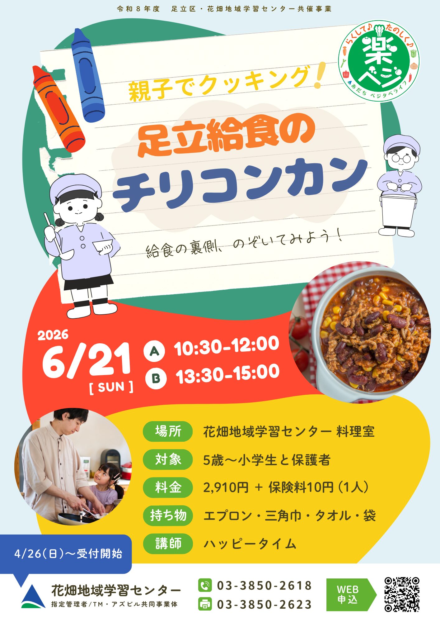 【4/26受付】親子でクッキング「足立給食のチリコンカン」A/B