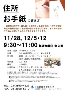 【9月26日受付開始】住所・お手紙の書き方(3日制)