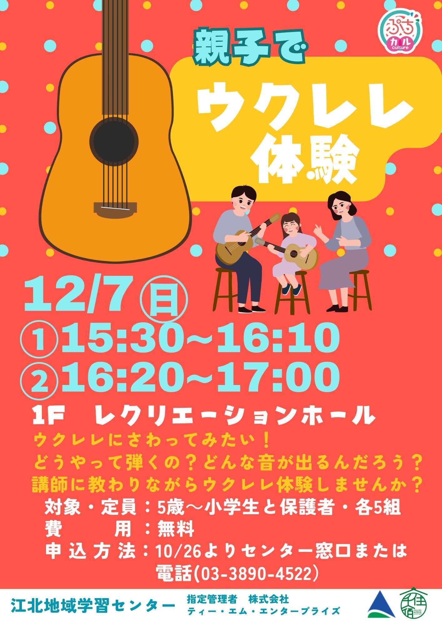親子でウクレレに触れながら、楽器の音色や弾く楽しさを体験できます。