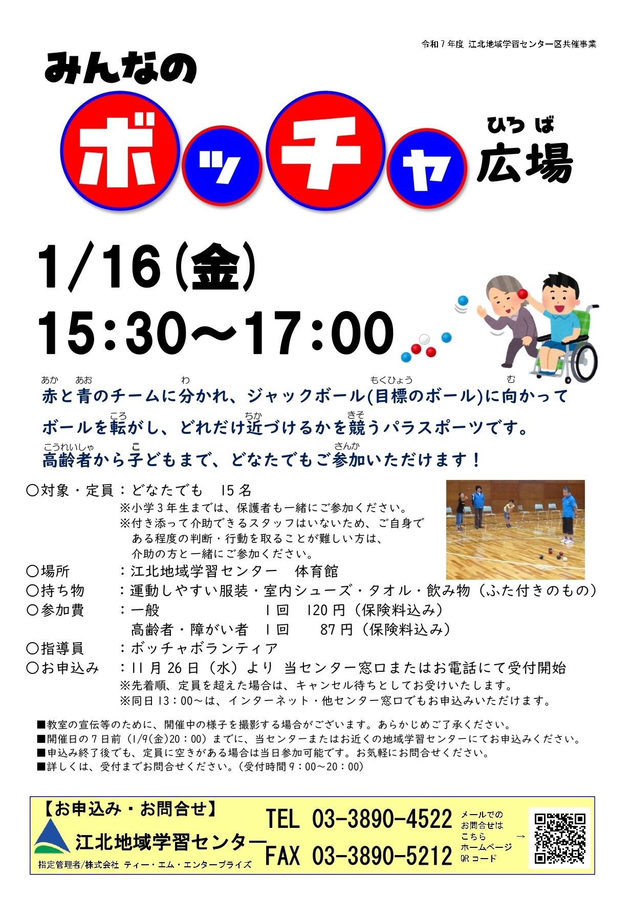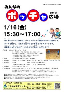 赤と青のチームに分かれ、ジャックボール(目標のボール)に向かってボールを転がし、どれだけ近づけるかを競うパラスポーツです。高齢者から子どもまで、どなたでもご参加いただけます。