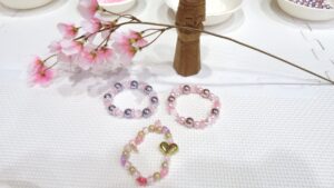 江北さくらマルシェ2026のイベントです。江北センターで定期開催している「ビーズブレスレット手づくりサロン」講師が用意したビーズセットから参加者が好みのものを選んで、桜がモチーフのブレスレットを作ります。