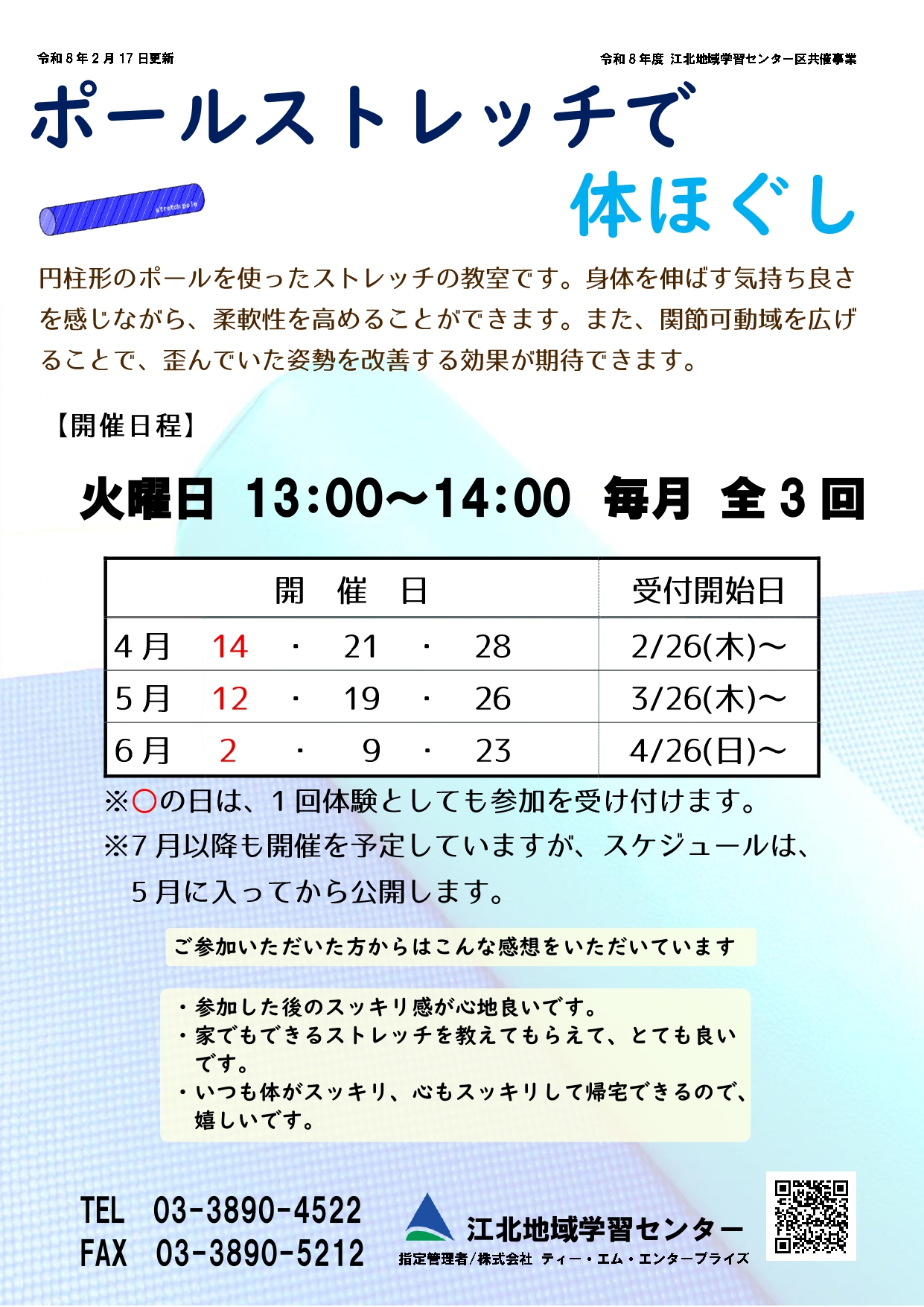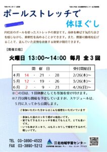 【2月26日受付開始】ポールストレッチで体ほぐし (3日制)