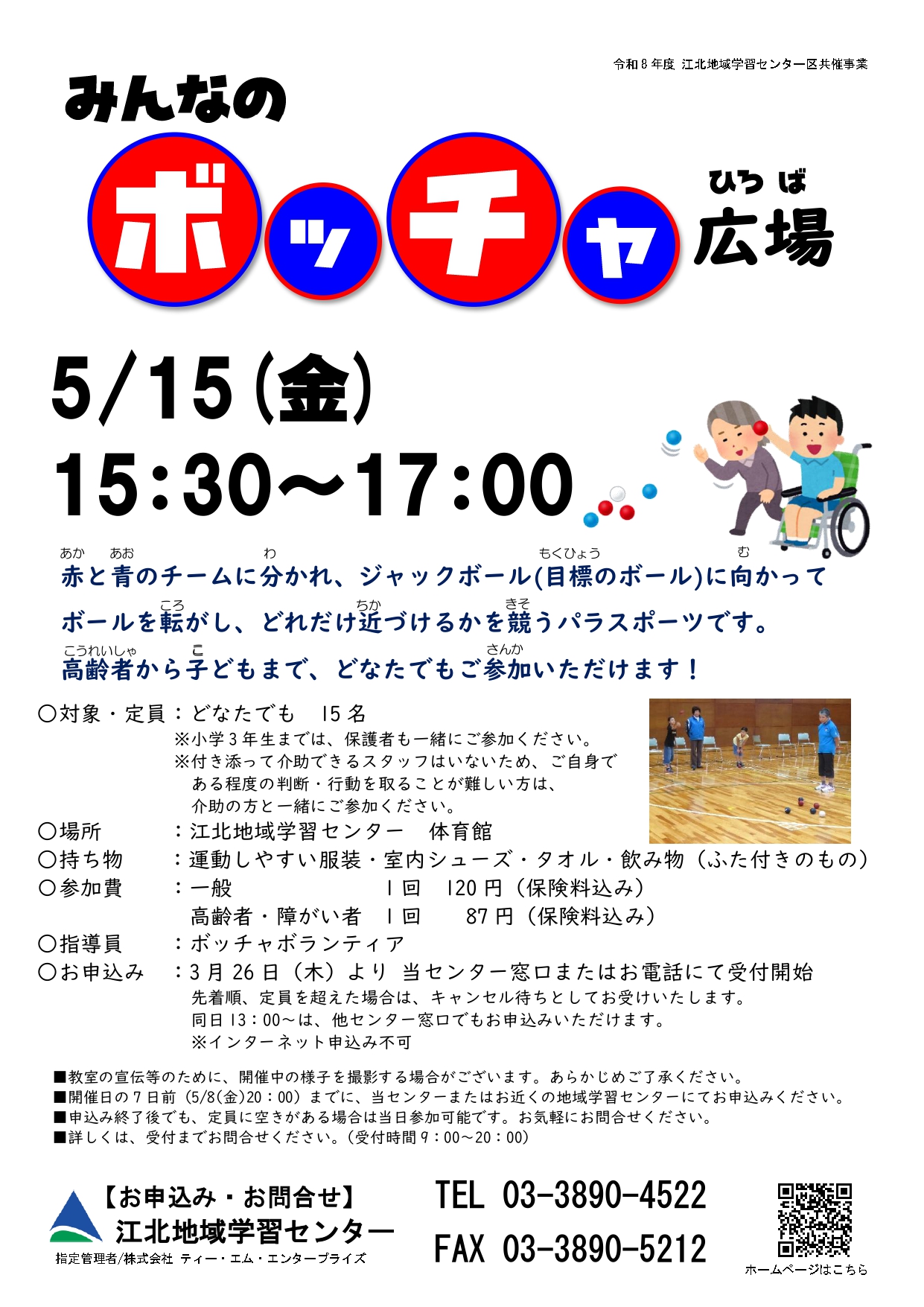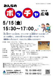 赤と青のチームに分かれ、ジャックボール(目標のボール)に向かってボールを転がし、どれだけ近づけるかを競うパラスポーツです。高齢者から子どもまで、どなたでもご参加いただけます。