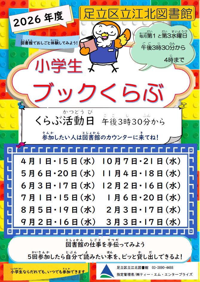 あそべるおはなし会(15:00~15:30)小学生ブックくらぶ(15:30~16:00)
