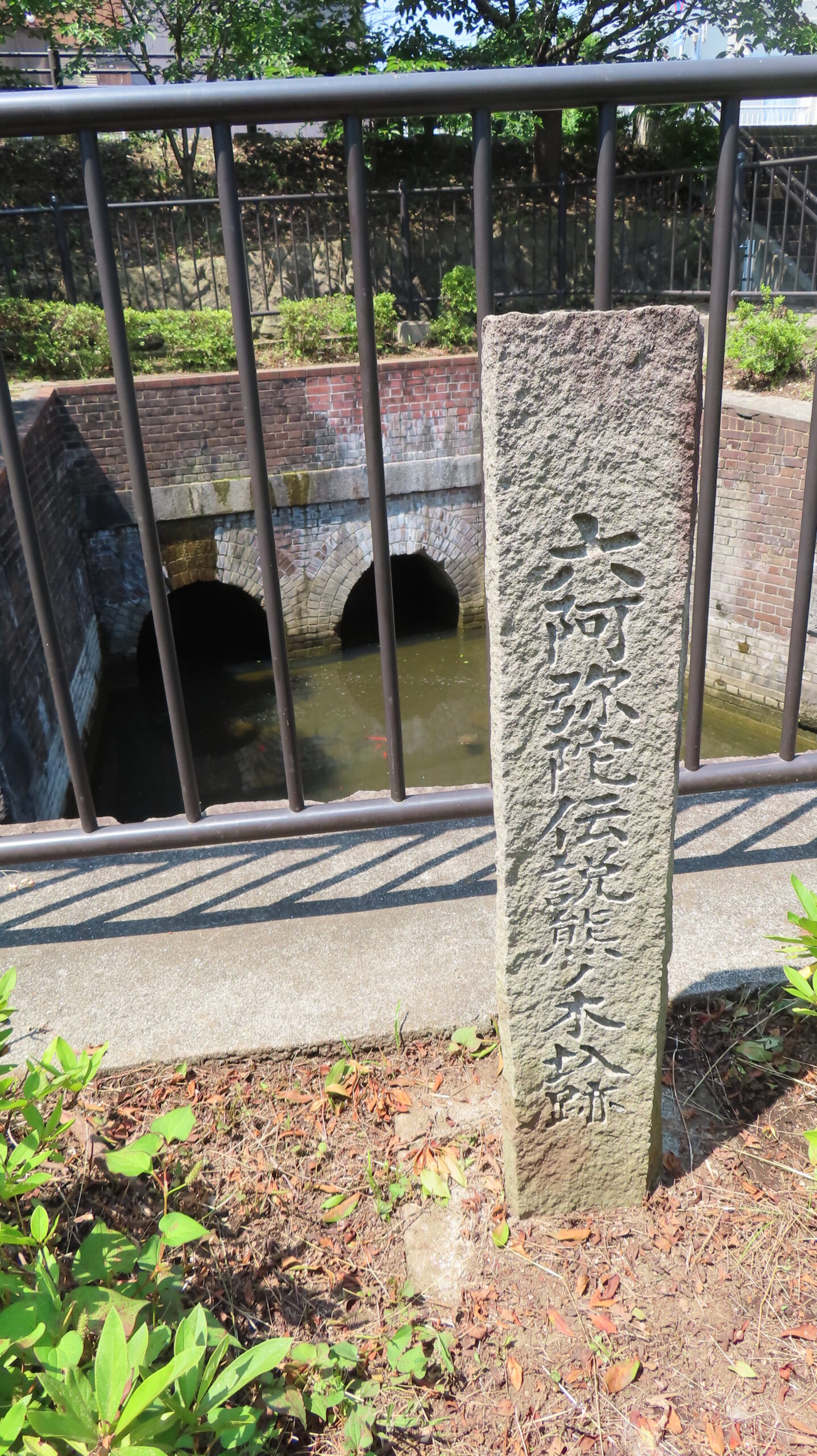 橋の横にある熊之木圦は広場の整備の中で発掘され、れんが造りで建設された珍しさからそのままの形で保存されています。地域の歴史がつまった桜咲く熊の木ひろばは、散策におすすめの場所です。