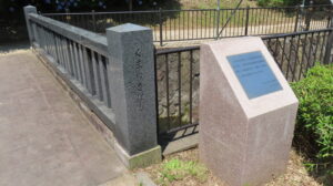 広場の小川には、熊之木橋というアーチ状の橋が架かっています。建設年代は天明年間といわれ、水面に映る様子がめがねのように見えるため、めがね橋とも呼ばれています。明治43(1910)年、幼少期の昭和天皇が荒川堤の花見に訪れた際に渡られたという記録も残っています。