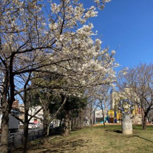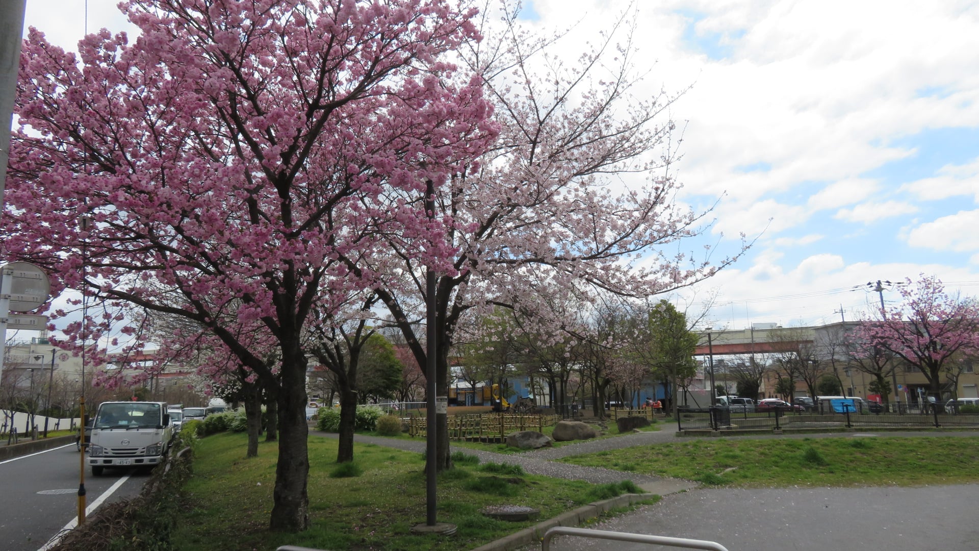 江北センターから神領堀緑道を南へ歩くと、足立堀之内公園があります。東京都下水道局熊の木ポンプ場の西側にある三角形の公園です。