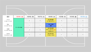 | 第1日曜日 | バスケットボール(練習形式優先) | バスケットボール(試合形式優先) |