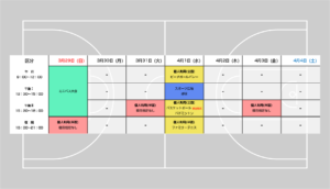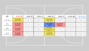 第1日曜日  バスケットボール(練習形式優先)  バスケットボール(試合形式優先)