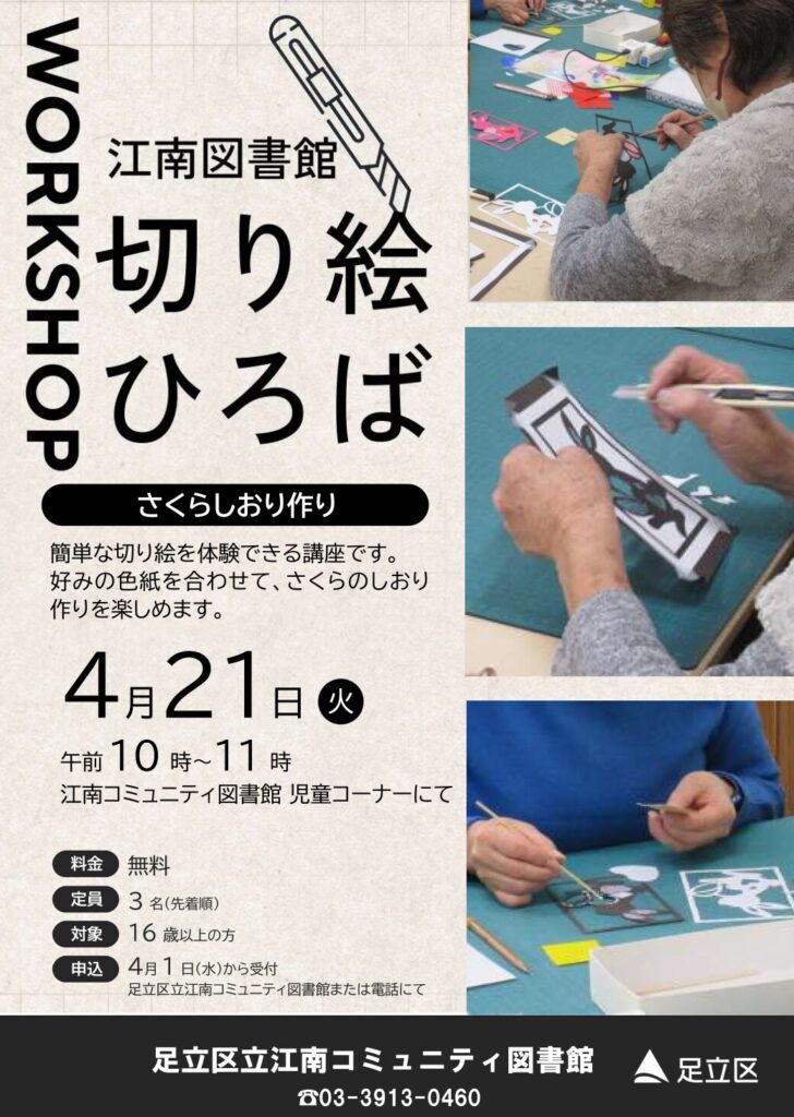 4月1日(水)から受付 足立区立江南コミュニティ図書館または電話にて