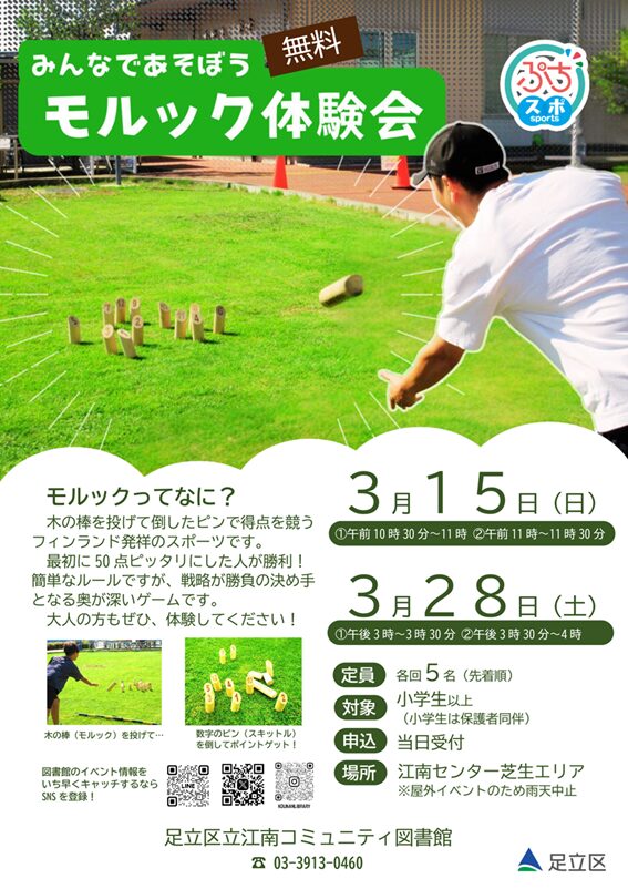 モルックとは、木の棒を投げて倒したピンで得点を競うフィンランド発祥のスポーツです。