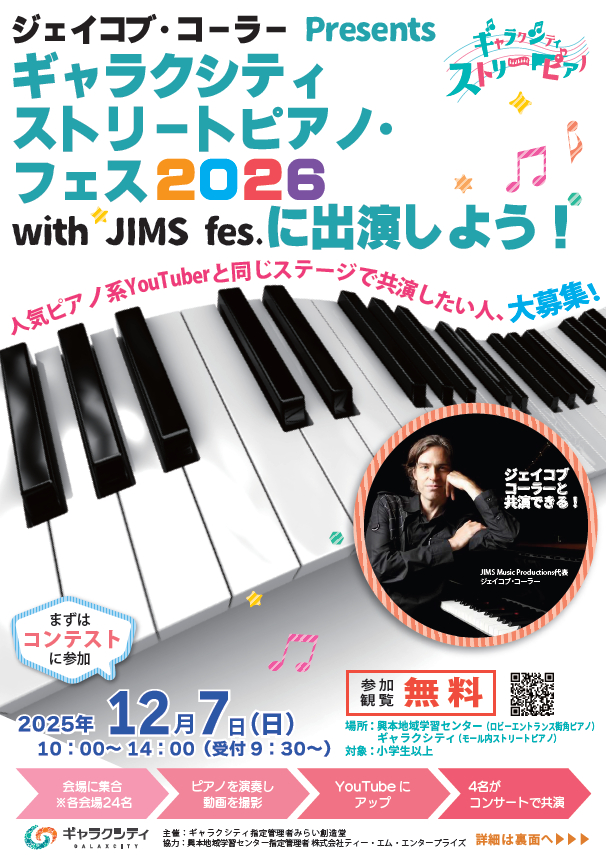 ジェイコブ・コーラー Presents ギャラクシティ ストリートピアノ・フェス2026 with JIMS fesに参加しよう!