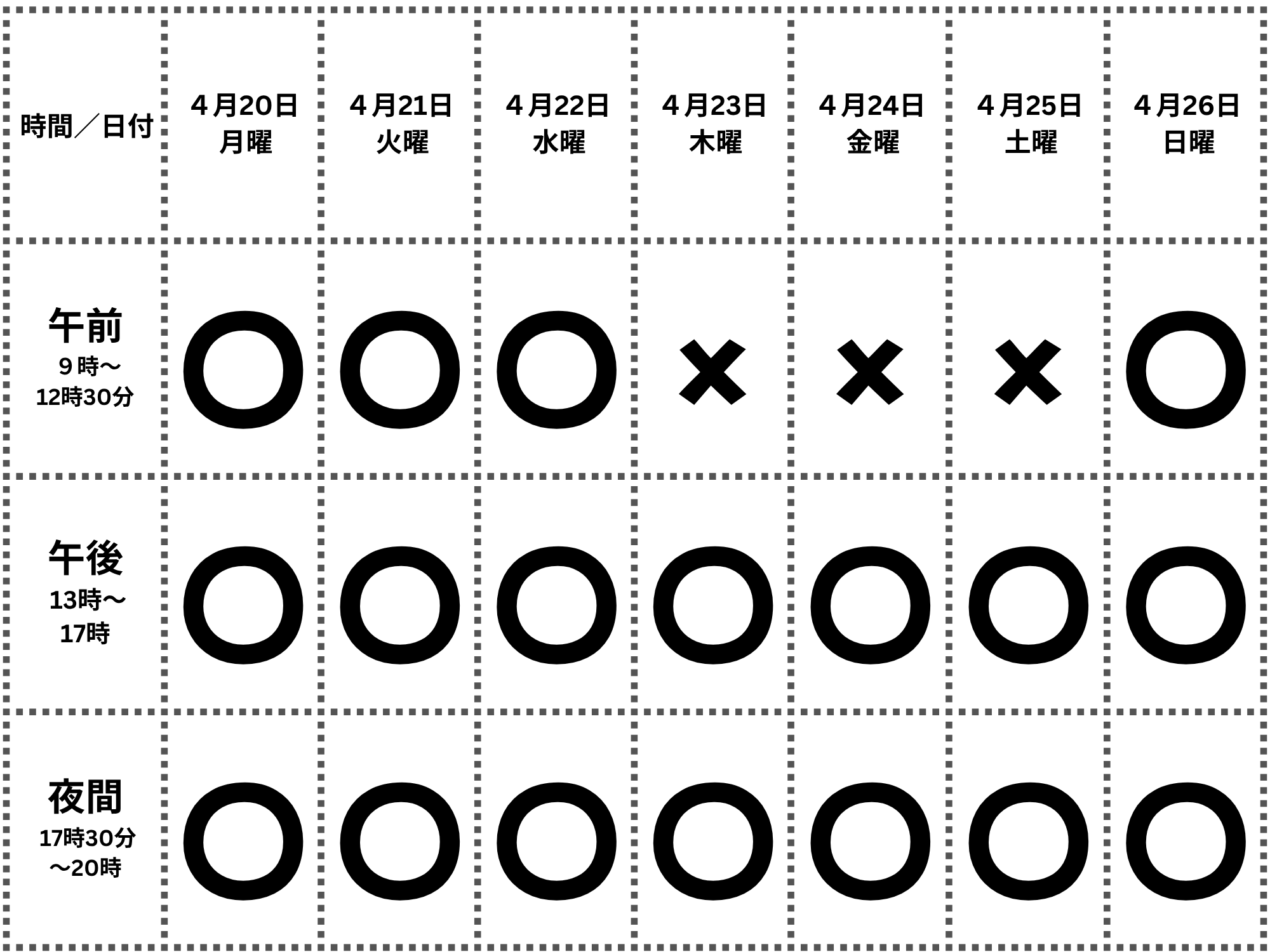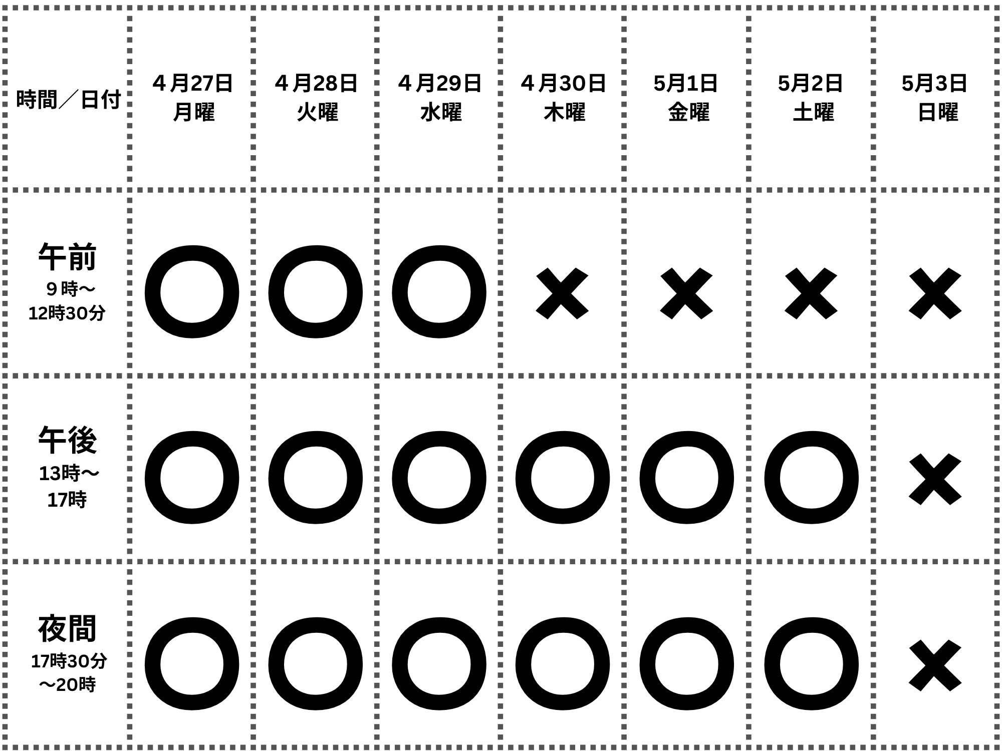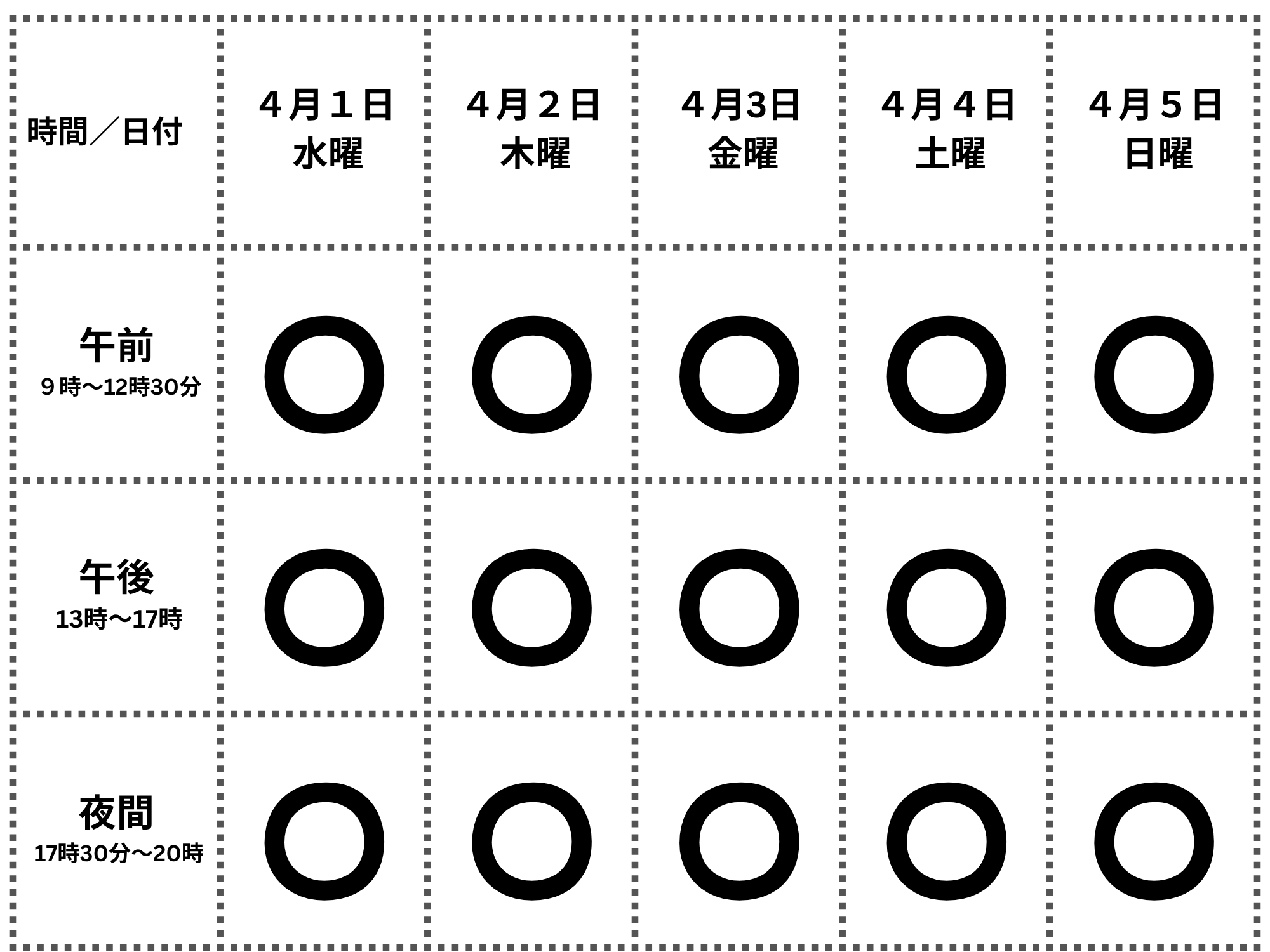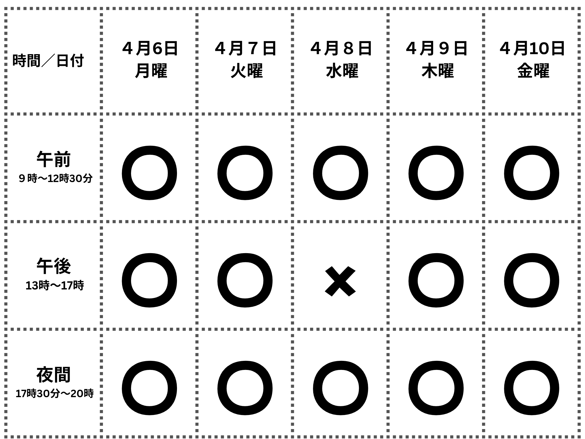 【時間】 午前9時~午後8時 ※午前のみ、午後のみ、夜間のみの場合あり、中学生は午後6時まで