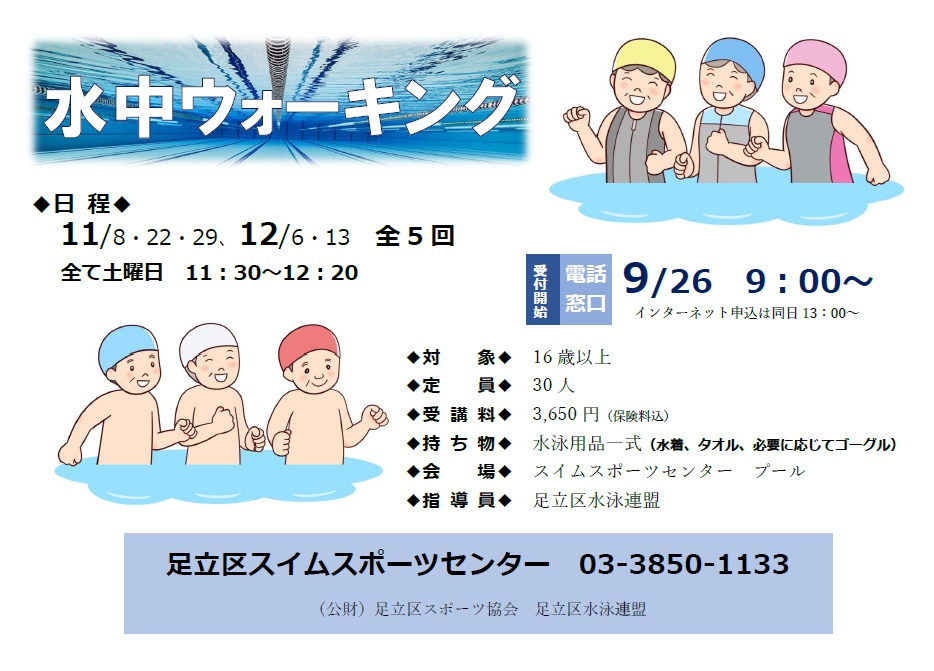 誰でも無理なく親しむことができる、水の特性を活用した全身運動です。腰や膝への負担も少なく健康維持・体力増進を目指します。